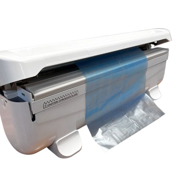 Dieser Abrollspender mit integrierter Schneidevorrichtung ist einfach, schnell und präzise in der Anwendung und für den Kontakt mit Lebensmitteln bestens geeignet.